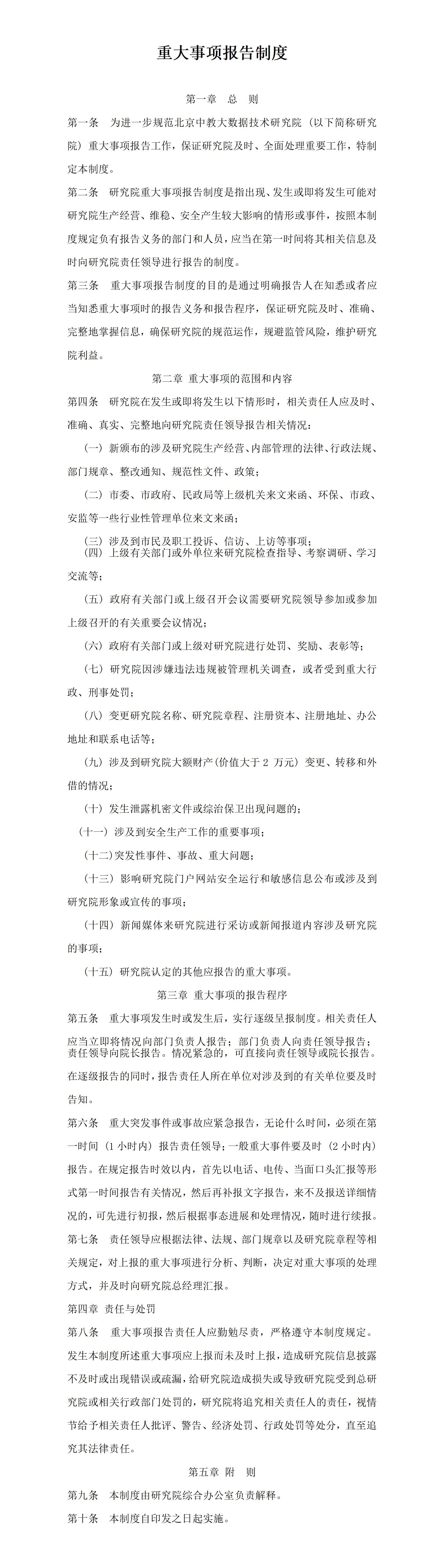 北京中教大数据技术研究院重大事项报告制度